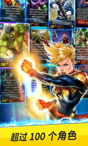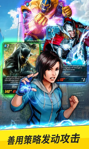 2、打造您的卡牌组合,创造您的最强战队。超级英雄和超级反派供您自由组合,包括复仇者联盟、捍卫者联盟、神盾特工局及其他;