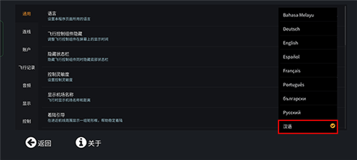 进入游戏后,点击左上角设置图标 → 选择General” → 点击Language” → 选择汉语”即可将界面切换为简体中文,彻底告别语言障碍,畅享无障碍飞行体验。