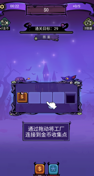 4、使用拖动功能将工厂与金币收集点连接起来。