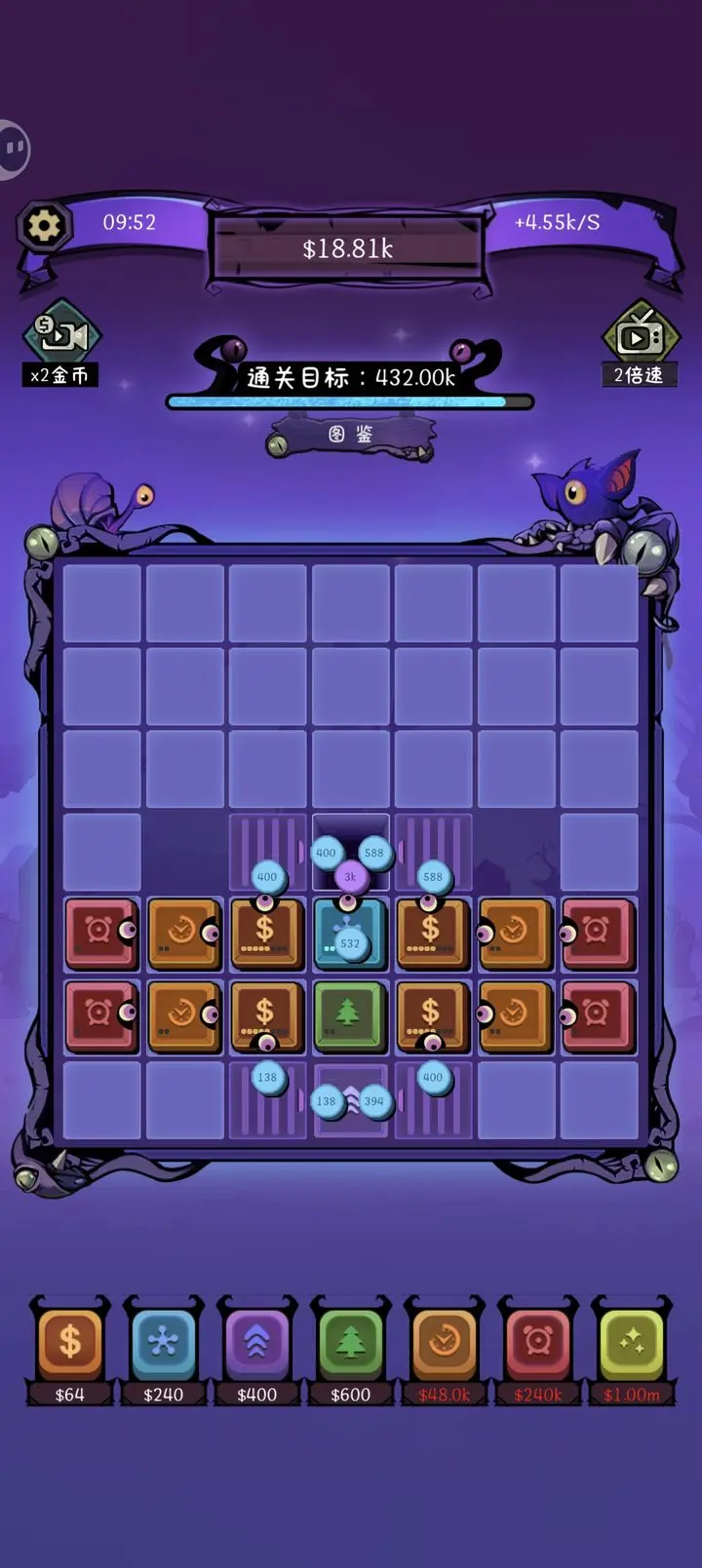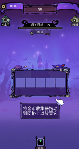 2、将金币收集器拖拽到网格区域进行安放。