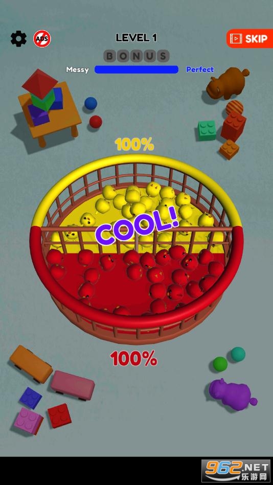 3、游戏中玩家需要将各种颜色的动物进行分类,全部整理完成后就能解锁更高难度的关卡;