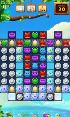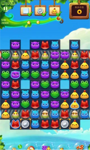 游戏采用多维度计分体系,普通消除基础得分为:小动物10分;雪块、毒液、毛球、银币、藤蔓、云朵、彩虹等障碍物为100分;鸡蛋400分;冰块1000分;宝石高达1500分。而通过组合消除可触发特效,大幅提升得分: