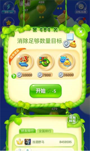 第484关任务包括消除冰块、银币及释放蛋壳中的小黄鸡。建议优先打通下方通道,利用动物下落自然消除上层冰块。尽量制造4消或L/T型组合以生成直线或爆炸特效,提升清除效率。注意:银币无法被特效直接穿透,需通过相邻普通消除逐一击破;而蛋壳需在其周围消除才能打破,释放的小黄鸡可自动飞行并协助消除其他目标。若最后仅剩一个冰块难以处理,可使用道具小锤子”精准敲除,确保顺利通关。