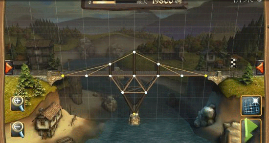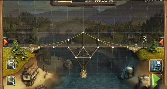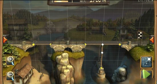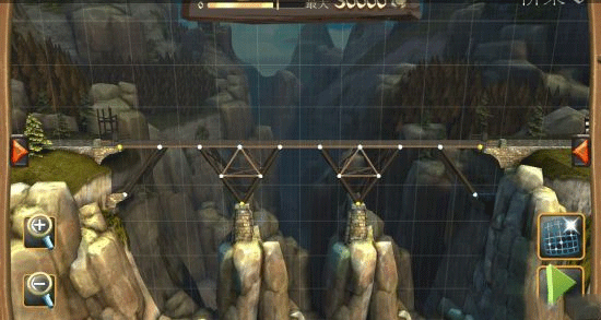 建造过程受严格预算限制,屏幕上方的进度条实时显示可用资金。超支即无法继续施工,迫使玩家在成本与结构强度间寻找最优解。桥梁需承受士兵、马匹及满载物资或石块的马车通行考验,稍有不慎便会坍塌。成功的关键在于合理运用材料特性:例如绳索虽无支撑力,但抗拉性能优于细木;三角形结构(尤其是等边或等腰)能显著提升稳定性;关键节点处的加固往往决定成败。