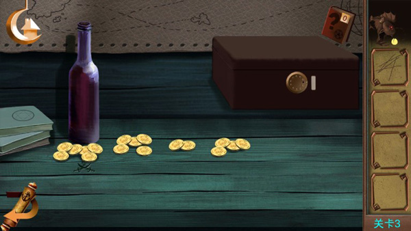 沉浸式环境互动 3D风格场景高度还原海盗船内部结构,玩家可自由环顾、点击、拖拽,与环境深度互动,感受身临其境的解谜氛围。