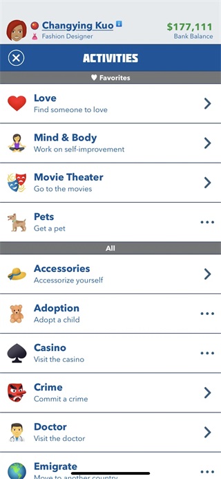 游戏还涵盖丰富的生活细节:在Love”中寻找伴侣,Mind & Body”里健身读书,Pets”收养猫狗甚至 exotic 宠物,还能领养孩子、参与赌博、实施犯罪或移居海外——人生百态,尽在指尖。