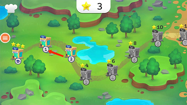 2. 在地图界面选择关卡,例如【第一关】,查看当前星级进度。