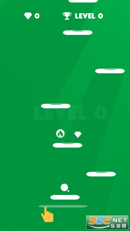 《弹得更高小游戏》是一款弹跳闯关小游戏,游戏中有一颗自动弹跳的小球,你要滑动小球,改变小球的弹跳方向,让小球跳上更高层平台,并且收集平台上的钻石,还有一飞冲天的道具可以收集,获得一飞冲天道具,可以加快小球的弹跳速度,让小球直接冲过好几个关卡。