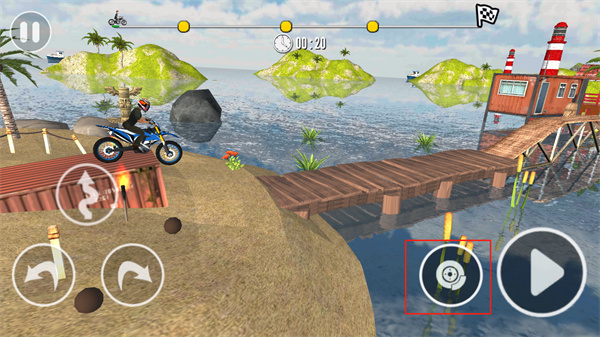 在行驶过程中,左下角按钮用于微调车身前后角度,这对空中特技和落地稳定性至关重要。右下角主按键控制油门加速,长按可提升速度;旁边的小按钮为刹车,用于精准控速或紧急减速。