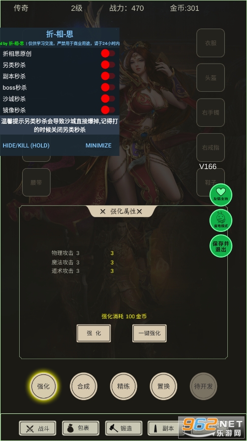 1、一个专注于文字的传奇游戏,独特的游戏界面给人带来耳目一新的感觉,并且还包含放置设置;