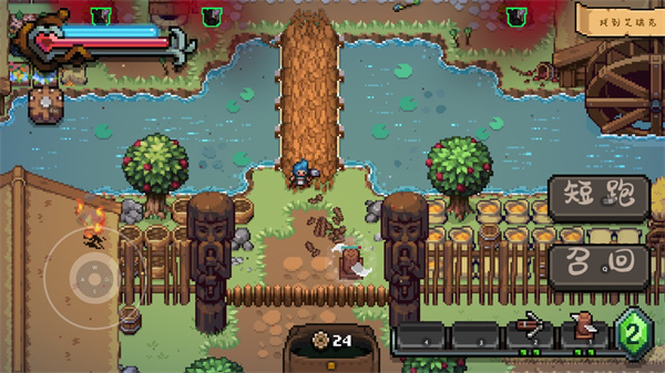 场景互动元素有限,主要集中在可破坏物(陶罐、草丛等),建议仔细搜索角落以收集齿轮——这是后期升级炮塔的关键材料。血瓶与护盾为即时生效道具,无法储存,虽实际减伤效果不明显,但在关键时刻或能逆转战局。
