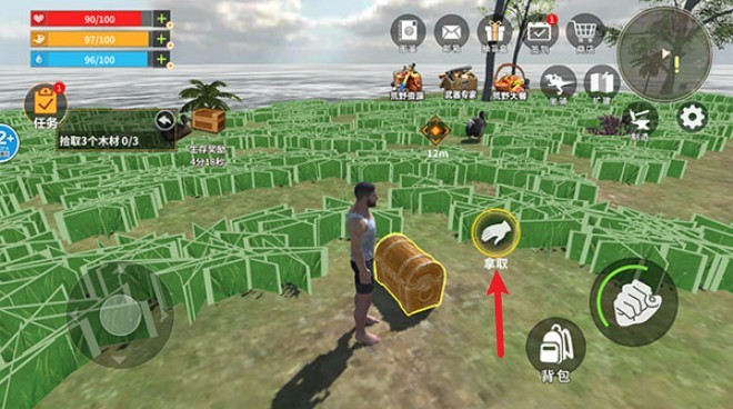 当你靠近可交互物品时,屏幕会自动弹出拾取”按钮,轻点即可将资源收入囊中。无论是散落的食材、工具还是稀有材料,都是你生存进化的关键。