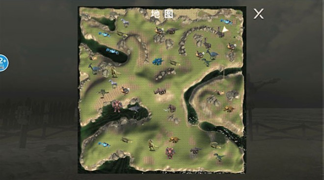 右上角集成商店、地图、图鉴等多功能入口。点击地图即可俯瞰全岛地形,精准规划行进路线,掌握资源分布与潜在威胁区域。