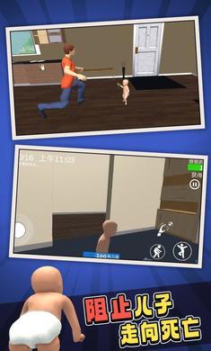 游戏内置多个风格迥异的房间场景,从普通客厅到厨房、车库甚至实验室,每个场景都布满可交互的危险元素。微波炉、电风扇、煤气罐、滑板、弹弓、水桶……数十种道具均可自由使用,组合出意想不到的连锁反应。爸爸可以用胶带封住插座,儿子却可能用拖把搭梯子翻窗;你以为关上了门就安全了,他却可能点燃窗帘引发火灾!高度自由的互动系统让玩家尽情发挥创意,上演一出出啼笑皆非的家庭闹剧”。