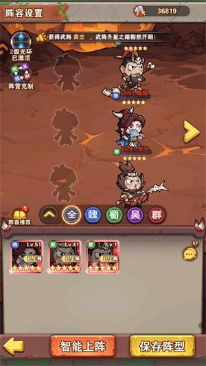 游戏采用放置+策略”双核驱动模式,无需高强度操作,离线挂机即可稳定获取资源。通过积累资源,你可以不断招募并培养数百位风格迥异的武将,每位武将都拥有专属技能与属性设定。更关键的是,合理搭配阵容可激活强大的阵营羁绊效果,大幅提升整体战力——策略布局,才是制胜关键!