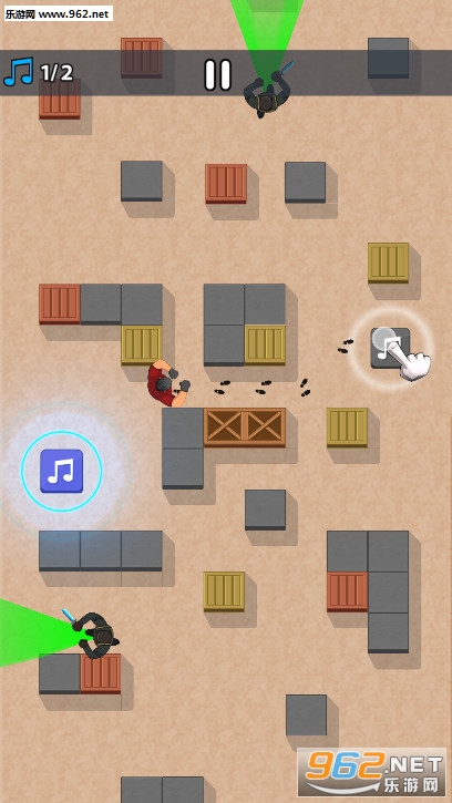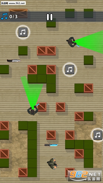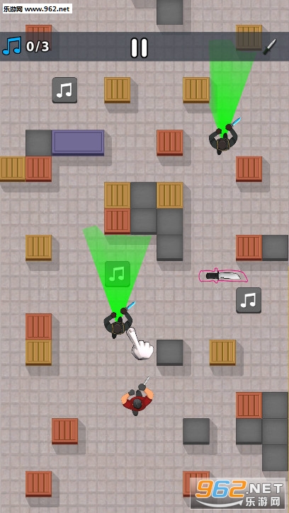 《我当刺客贼6安卓版》是一款敏捷潜行游戏,游戏中玩家是一名刺客,你要在这个有很多掩体的房间里面行动,房间里面有很多音乐符号的地砖,你踩中它们就会发出声音,房间里面的巡逻兵会被声音吸引过来,你要拿到房间里面的道具,刺杀掉这些巡逻兵。