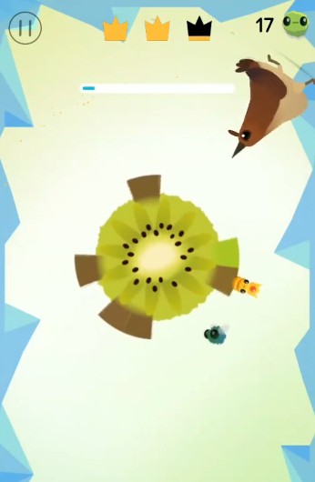 第十五至十八关为高速旋转的奇异果,节奏不断加快,必须精准把握啄食时机。第十九至二十一关则进入石榴世界,红粒可食、绿粒可消黑粒、黑粒致命,三色机制需灵活应对,背景甚至切换至外太空,视觉与操作双重挑战!