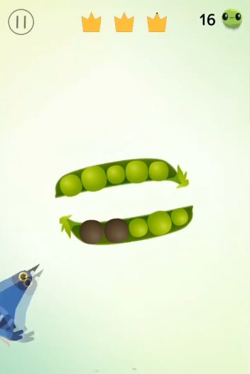 第九关起可更换皮肤,例如持枪鸽子”模式需用射击代替啄食,操作逻辑大变,难度陡增。第十至十一关转为豌豆荚场景,避开黑豆子是关键。