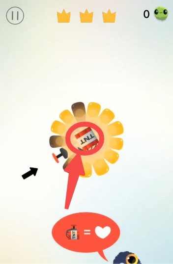 第二关出现两个黑色玉米粒,节奏虽不快,但需眼疾手快,避免误触。第三关引入TNT机关,点击中央按钮可炸掉部分坏玉米,大幅降低难度。
