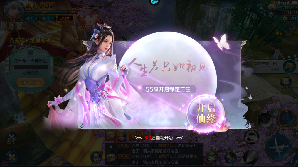 角色达到55级后,开放浪漫结婚系统,与心仪仙侣共度修仙岁月。