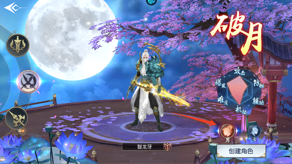 2. 创建角色时,可在弈剑、破月、开天三大职业中任选其一,每种职业均提供男女双形象,并支持右侧预览职业定位。