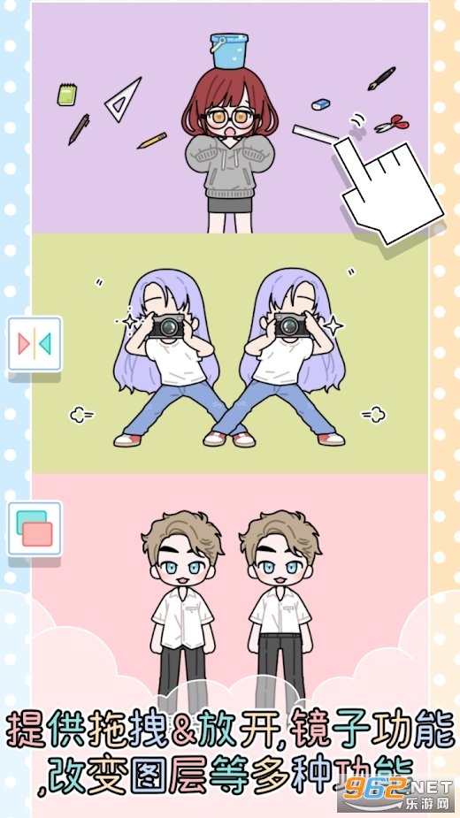 提供拖拽放开、镜子图层功能,以及好看的动画等多种功能。