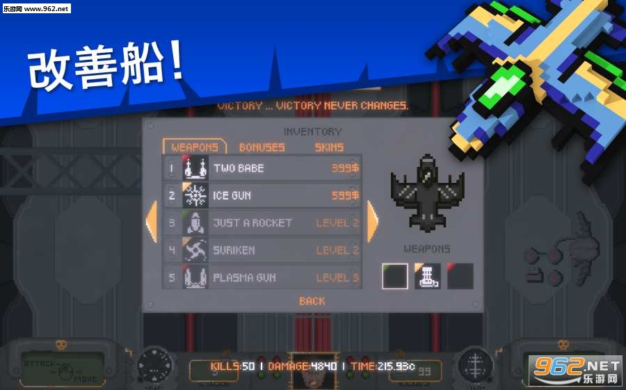 一款非常不错的像素风飞行射击游戏,游戏的玩法轻松有趣,还有着各种各样的boss等待你的挑战,使用金币不断的升级你的战机,注意各种各样的弹幕,游戏中还有着带感的背景音乐,游戏的玩法轻松有趣,通过困难的关卡,推荐给喜欢飞行射击游戏的玩家。
