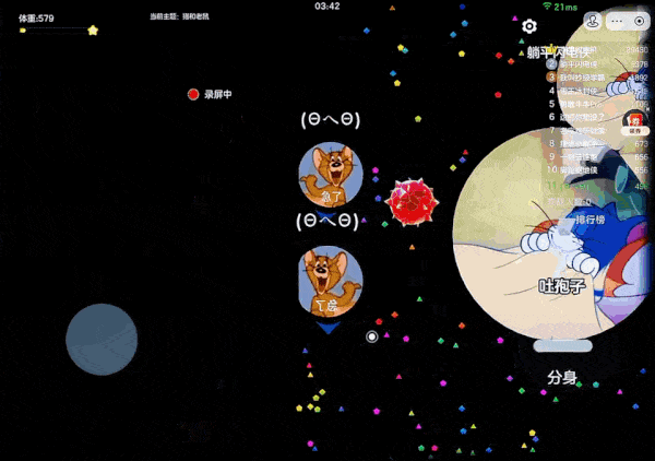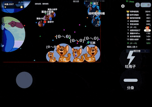 游戏操作极度友好,仅需一根手指戳戳戳”即可完成所有指令——摇杆控制方向,两个技能键实现分身与吐球。看似简单,实则暗藏玄机。高手往往通过精准走位、边缘贴墙、预判拦截等技巧掌控战局。例如,沿地图边缘移动可借助反弹快速转向;在角落利用夹持效应”加速合体;面对大球压制时,巧妙回撤再伺机反杀。真正的胜利,属于那些既懂操作又善思考的玩家。