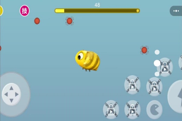 当场景中出现红色能量球时,精准操控蜜蜂定位并吞噬,可显著提升顶部进化进度条,加速体型跃迁。