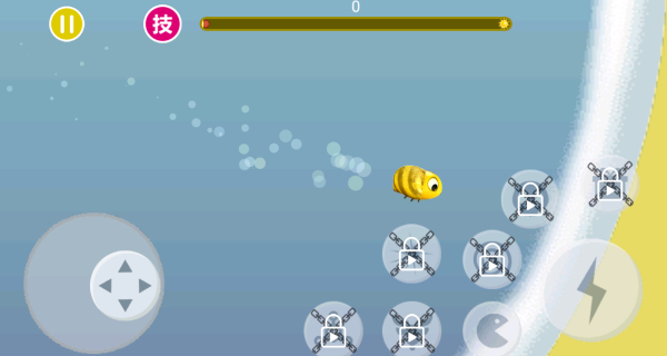 初始界面通过左侧虚拟摇杆控制蜜蜂移动,优先靠近场景中散布的发光气泡目标,它们是前期快速成长的关键资源。