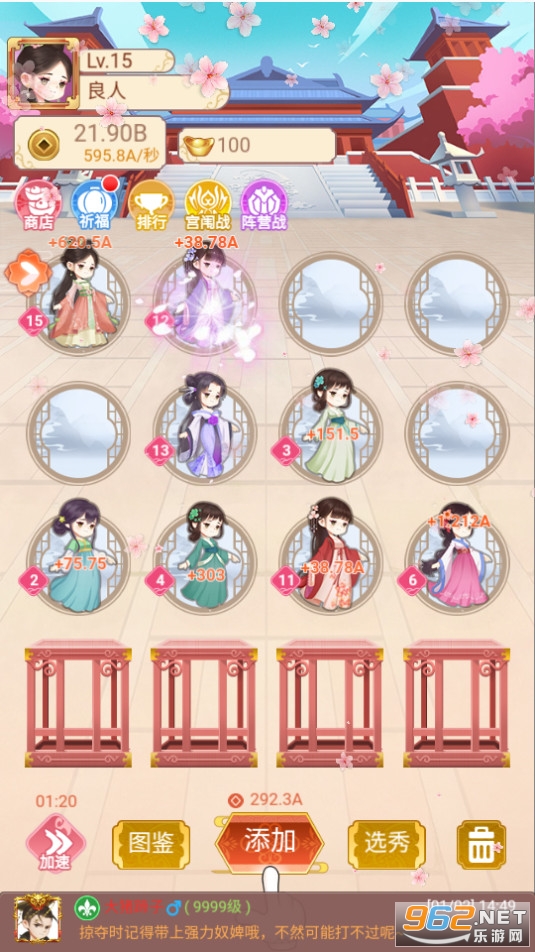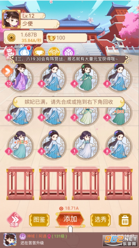 经典合成玩法,从丫鬟到秀女,从秀女到贵妃,最后凤临天下成为女皇。轻松愉悦尽享养成乐趣。