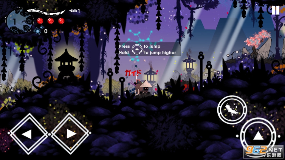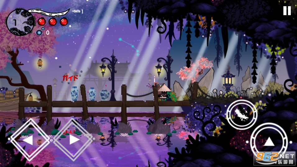 2. 令人惊叹的2D艺术设计展现了日本文化的精髓,让玩家沉浸在美丽而神秘的游戏世界中(例如跳跃、攻击敌人或使用特殊能力操纵环境)。