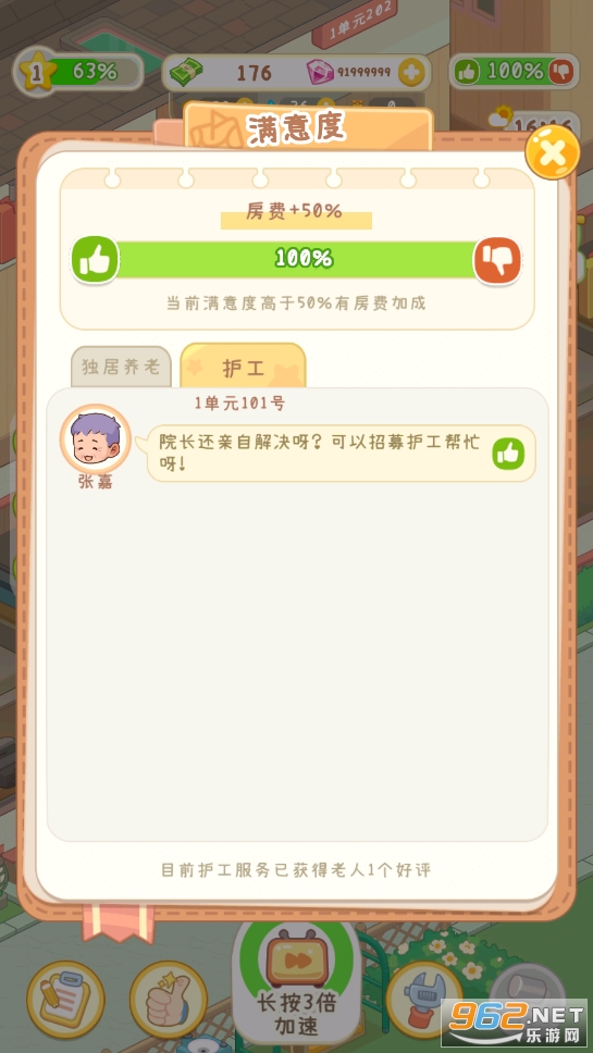 挑战经营管理能力:玩家需要合理分配资源、解决员工和老年人的问题,挑战自己的经营管理能力。