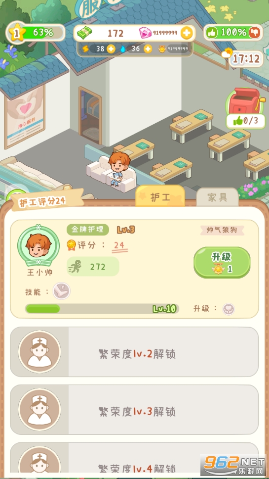 逐步解锁新功能:随着游戏的进展,玩家可以逐步解锁新的设施和服务,提升养老院的品质和吸引力。
