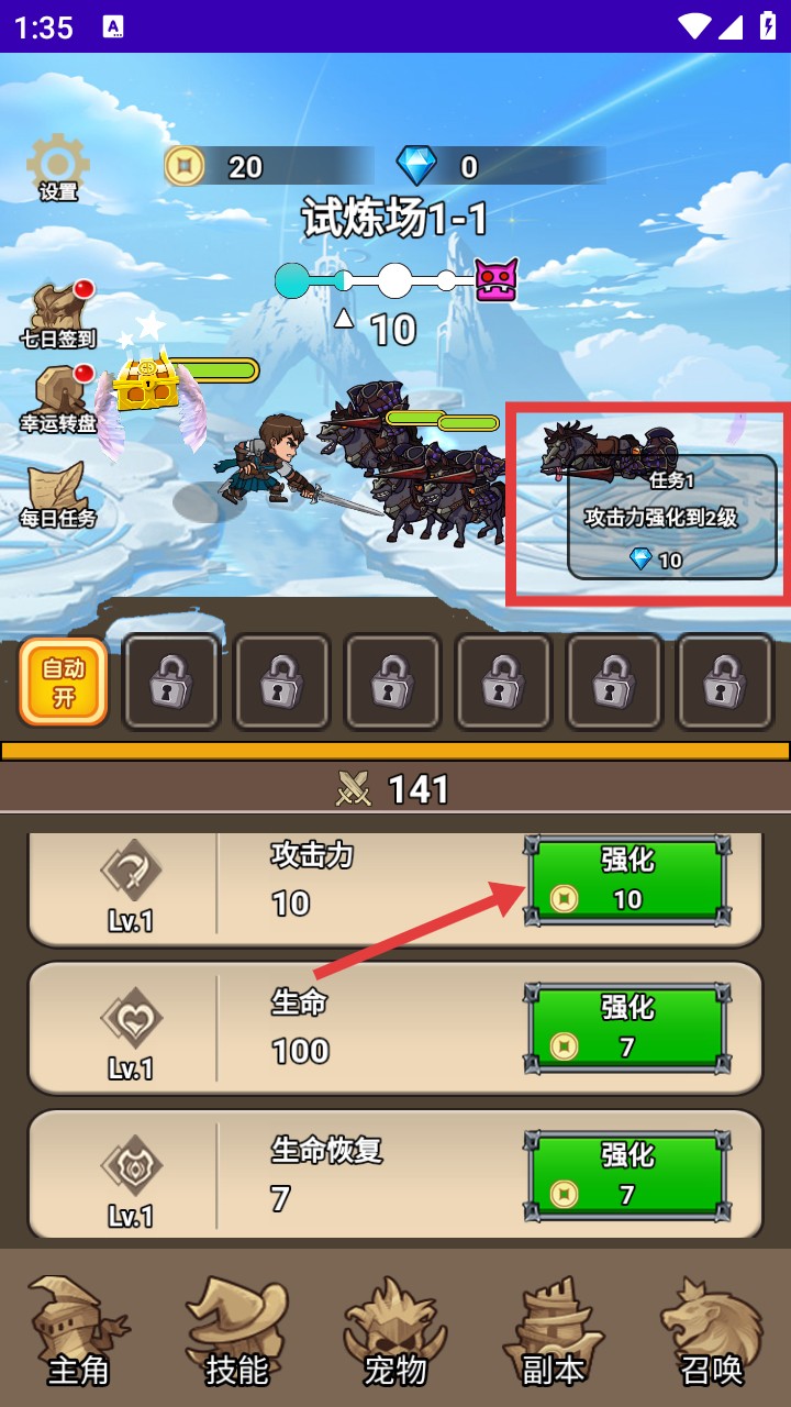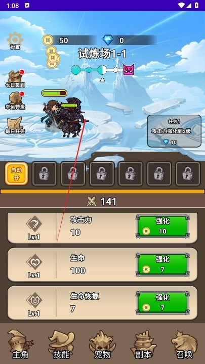 随着等级提升,你可以通过强化界面全面提升角色属性,包括生命、攻击、防御等核心数值,为后续高难度挑战打下坚实基础。