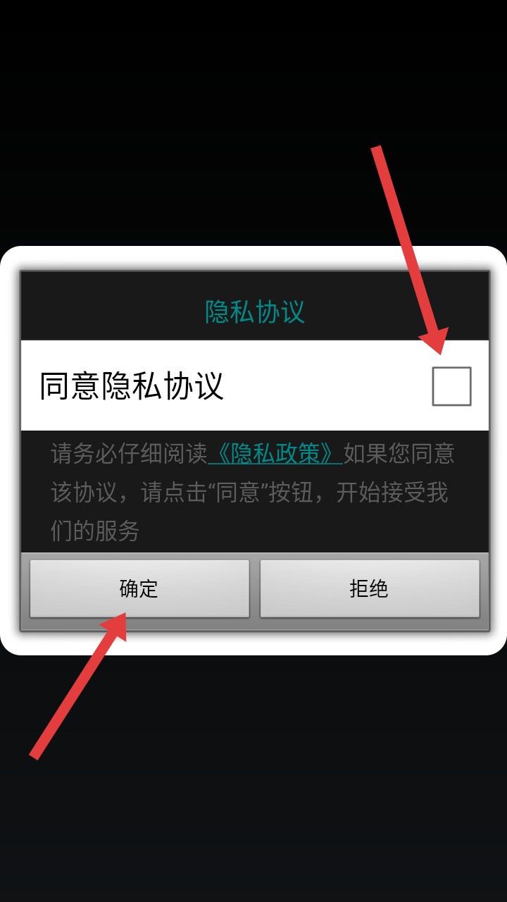 首次启动游戏时,请先勾选【同意隐私协议】并点击【确定】,即可顺利进入主界面。