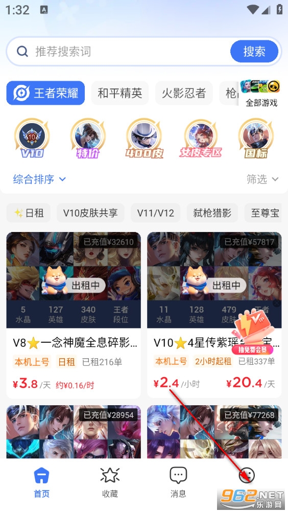 3. 登录成功后返回首页,即可浏览海量账号并开始租赁体验。