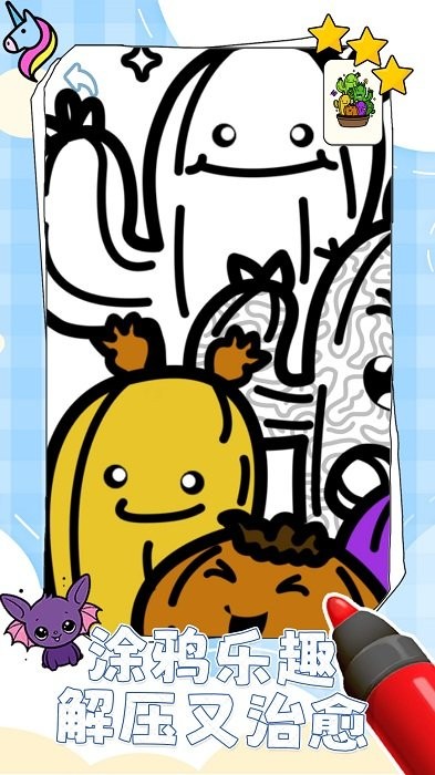 解压填色支持完全离线使用,无需网络即可随时随地开启涂色时光。每日更新限时任务,完成挑战即可赢取金币奖励,用于解锁更多精美图案。特别设置儿童专区,采用大色块与简笔画风格,适合亲子共玩,增进互动与陪伴。此外,开发团队定期推出新主题与节日活动,确保内容常玩常新。
