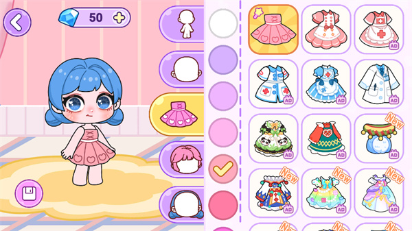 游戏提供海量个性化选项,从性别选择到面部细节,再到服饰配色与风格搭配,全方位满足你的创作欲。你可以自由调整肤色、发色、眼睛形状、眉毛弧度甚至表情情绪,搭配帽子、眼镜、翅膀、尾巴等数十种配饰,真正实现千人千面”,塑造只属于你的梦幻角色。