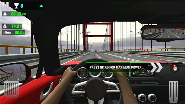 进入游戏后,右侧虚拟按钮为油门,点击即可加速;左侧按钮为刹车,用于减速或精准过弯。当车辆燃油耗尽时,可通过右下角的加油按钮及时补充能源。在夜间或黑暗隧道中,点击车灯图标可开启照明,确保安全驾驶。此外,右上角提供多视角切换功能,支持第一人称、追尾及俯视等多种观察角度,助你全面掌控赛道局势。