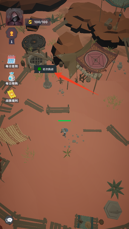 进入游戏后,你将面临两个初始地图选择:废墟村庄或无尽沙漠。两者对后续发展无实质影响,可凭喜好自由挑选。正式冒险前,务必先领取各项新手福利——包括每日签到奖励、商店初始1000金币(可用于购买初期装备),以及各类登录礼包。随后点击初次挑战”开启首战,每次战斗消耗2点资源,熟悉半自动战斗机制后,即可轻松推进剧情。完成新手关卡后返回主城整备,继续深入未知深渊。