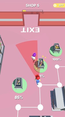 《商店小偷安卓版》是一款玩法十分有趣的闯关益智手游,玩家在游戏中将会惊醒一场超市大冒险,你需要躲过监控的追击,成功偷取游戏剧情中要求的物品,完成游戏挑战,本款游戏拥有简约的游戏画风,欢快的游戏背景音乐,增加玩家的游戏体验。
