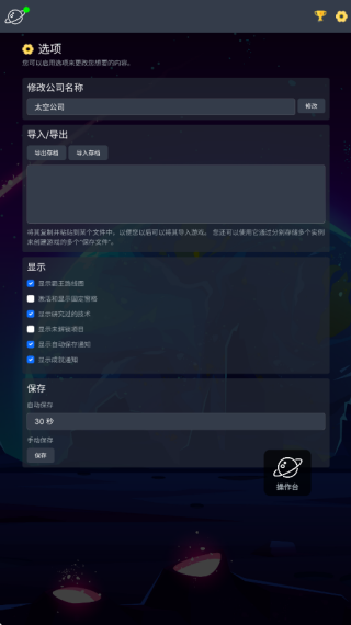 进入游戏后,首要任务是通过完成任务与探索获取资源,推动公司发展。点击右上角的奖杯图标,可查看成就列表并领取专属奖励,助力早期成长。左上角的公司图标则展示当前可拓展的业务路径,帮助你规划长期发展方向。别忘了在设置面板中自定义公司名称,并定期手动存档——若未及时保存,所有进度将无法恢复!