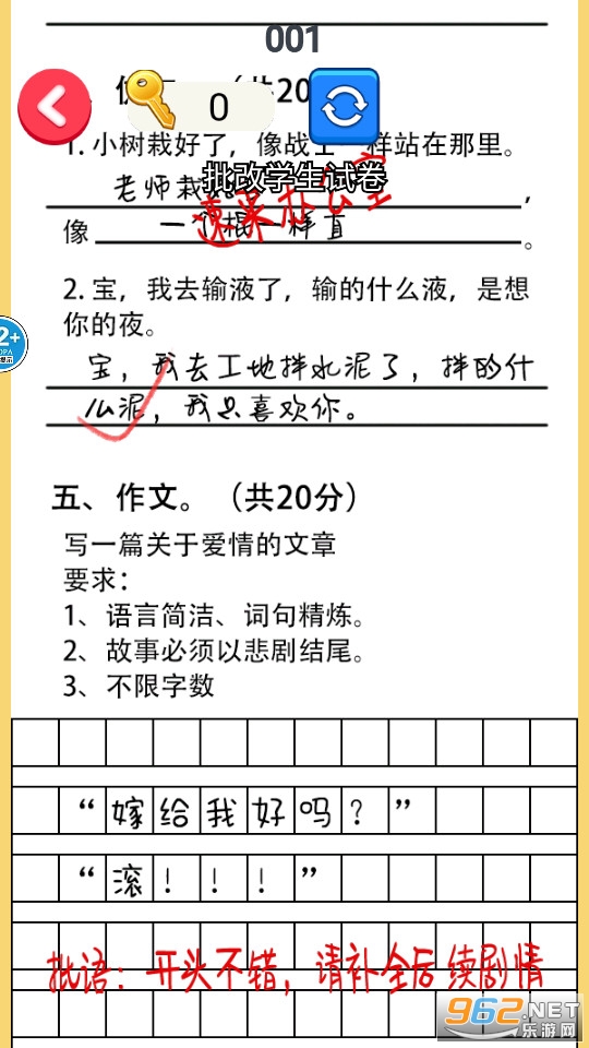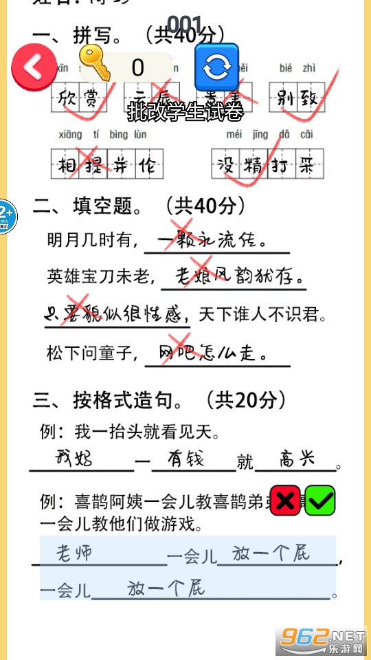 1.模拟老师批改试卷的真实场景,让玩家扮演老师,对学生的试题答案进行审核和评分;