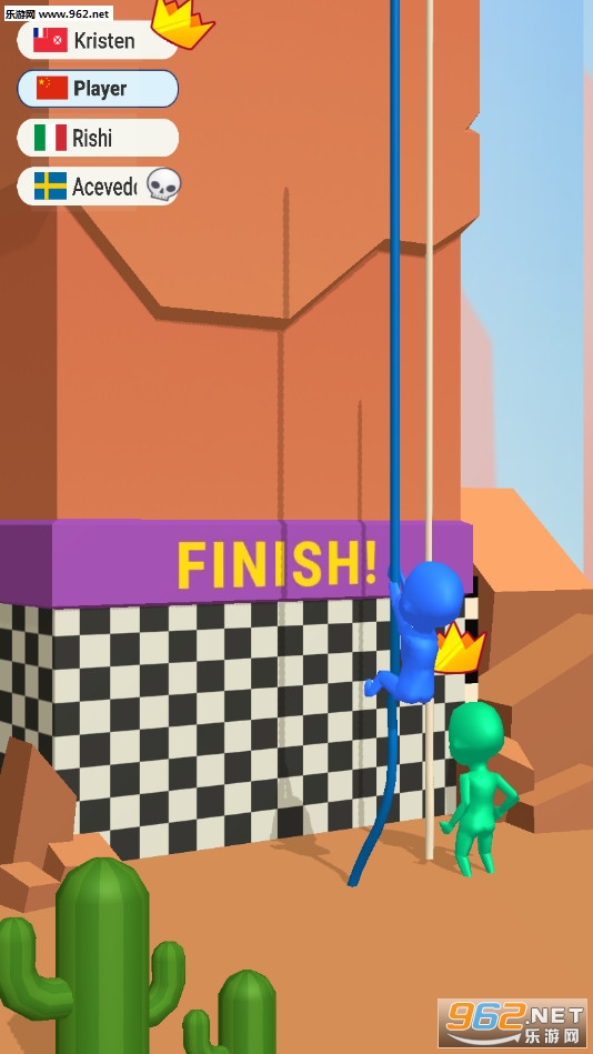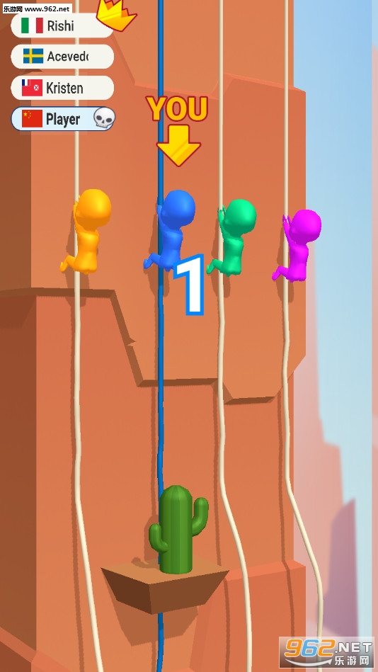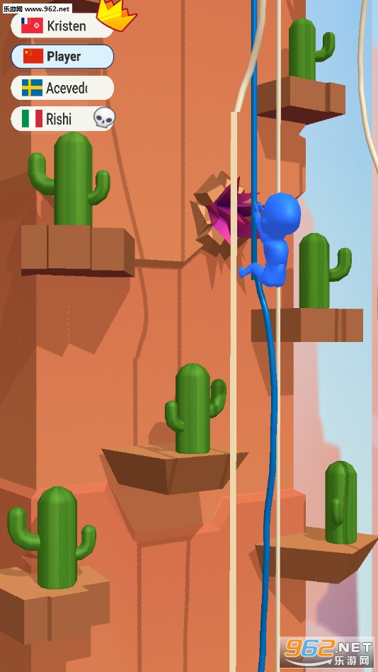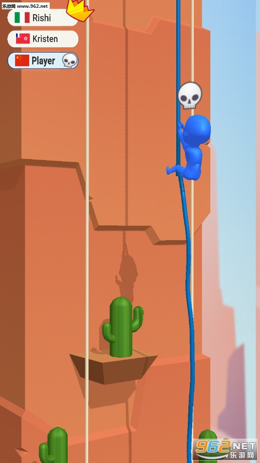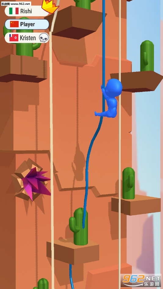 《死命给我爬安卓版》是一款画面清新的敏捷下降的竞技游戏,游戏中玩家将控制一个橡皮人从高空沿着绳子向下降落,点击屏幕可以控制人物开始降落,然后脚蹬墙壁再次离开墙壁降落,注意途中会有着仙人掌、钉刺等危险,如果不小心触碰到了就需要重头开始了,最先到达底部的人获得胜利。
