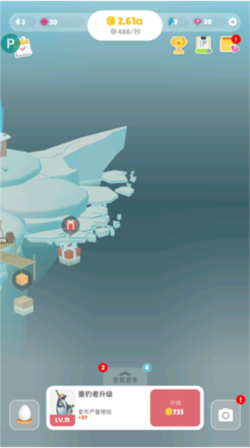 《企鹅岛》采用极简操作与放置玩法相结合的设计理念,新手也能快速掌握核心机制。游戏以2048式的合成玩法为基础——通过滑动屏幕合并相同鱼类,获取更多资源,用于扩建岛屿、建造栖息地。整个过程节奏舒缓,配合轻柔的背景音乐与海浪声,为你营造一个远离喧嚣的宁静角落。