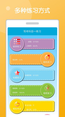 驾考科目一练习应用有多种练习题库方式,增强你的记忆功能。