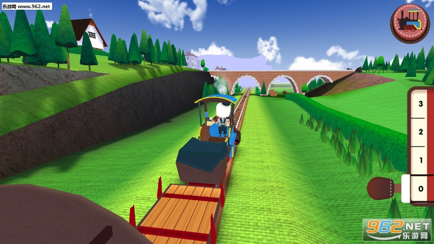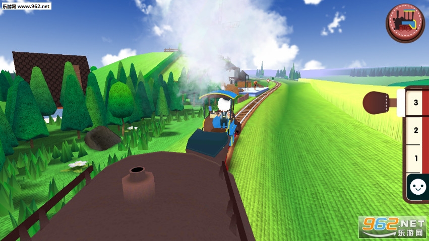 卡通风格的火车模拟游戏,适合小朋友们玩,可以驾驶火车在轨道上行驶,有着0到3档四个档位,可以鸣笛、运送乘客货物等,喜欢的朋友可以下载试试。
