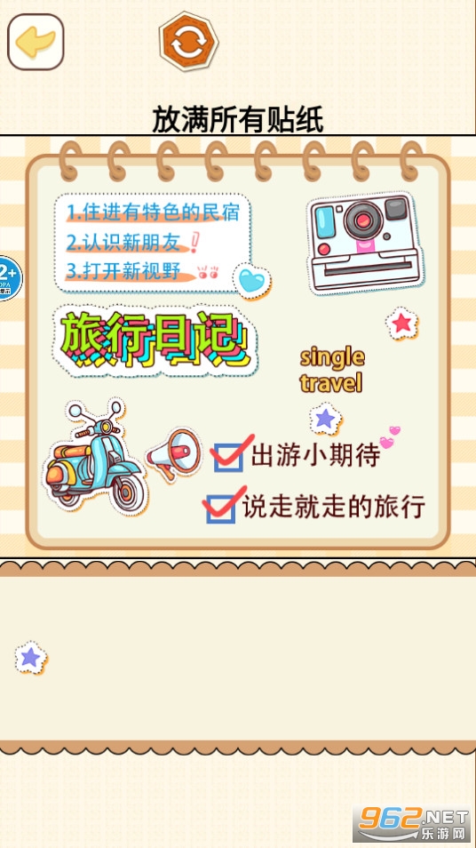 3、游戏内有各种元素供您挑选,例如贴纸、布景、字体等,完结手账更为便利!
