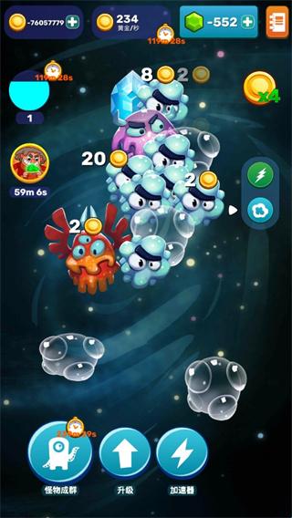 3、丰富道具系统:使用道具强化你的游戏体验,加速金币收集,提升怪物的合成效率,让你的怪兽王国日益壮大。